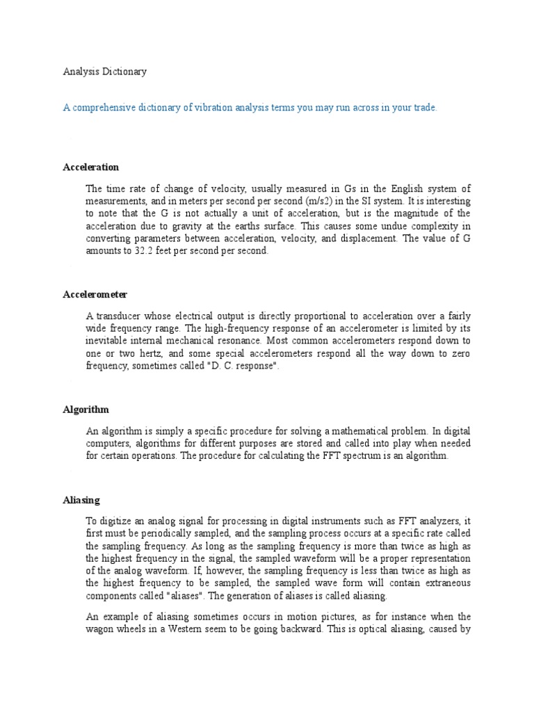 A comprehensive dictionary of vibration analysis terms you may run across in your trade.