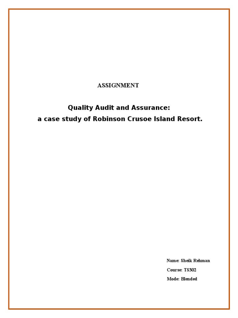 The objective of this report is to analyze a tourism property in Fiji, namely Robinson Crusoe