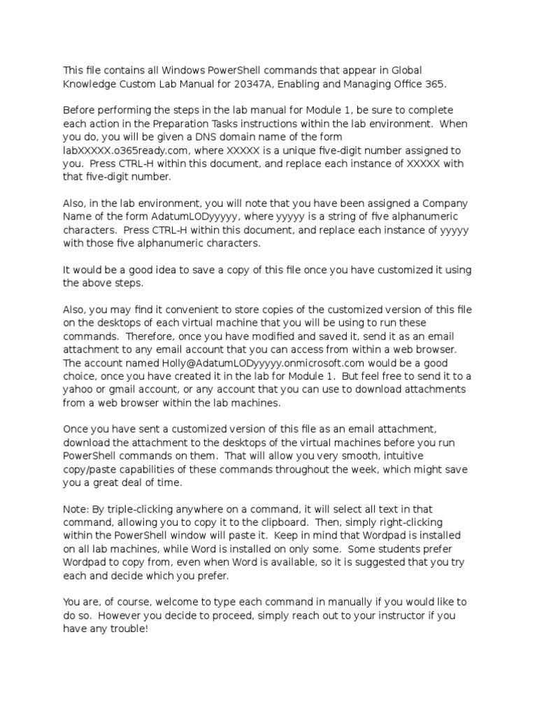 Knowledge Custom Lab Manual for 20347A, Enabling and Managing Office 365.