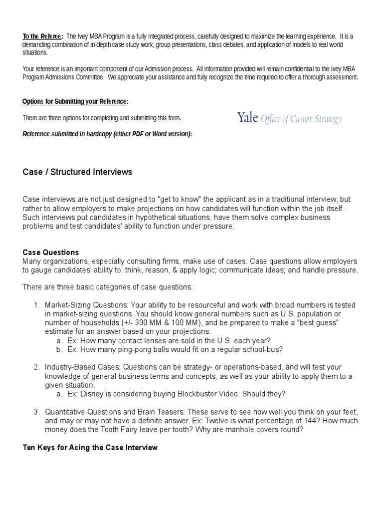 interviewer. Throughout the case, your role as an applicant is also to give insight wherever you