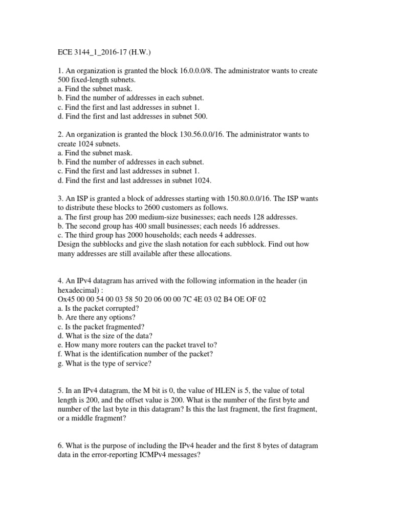 1. An organization is granted the block 16.0.0.0/8. The administrator wants to create
