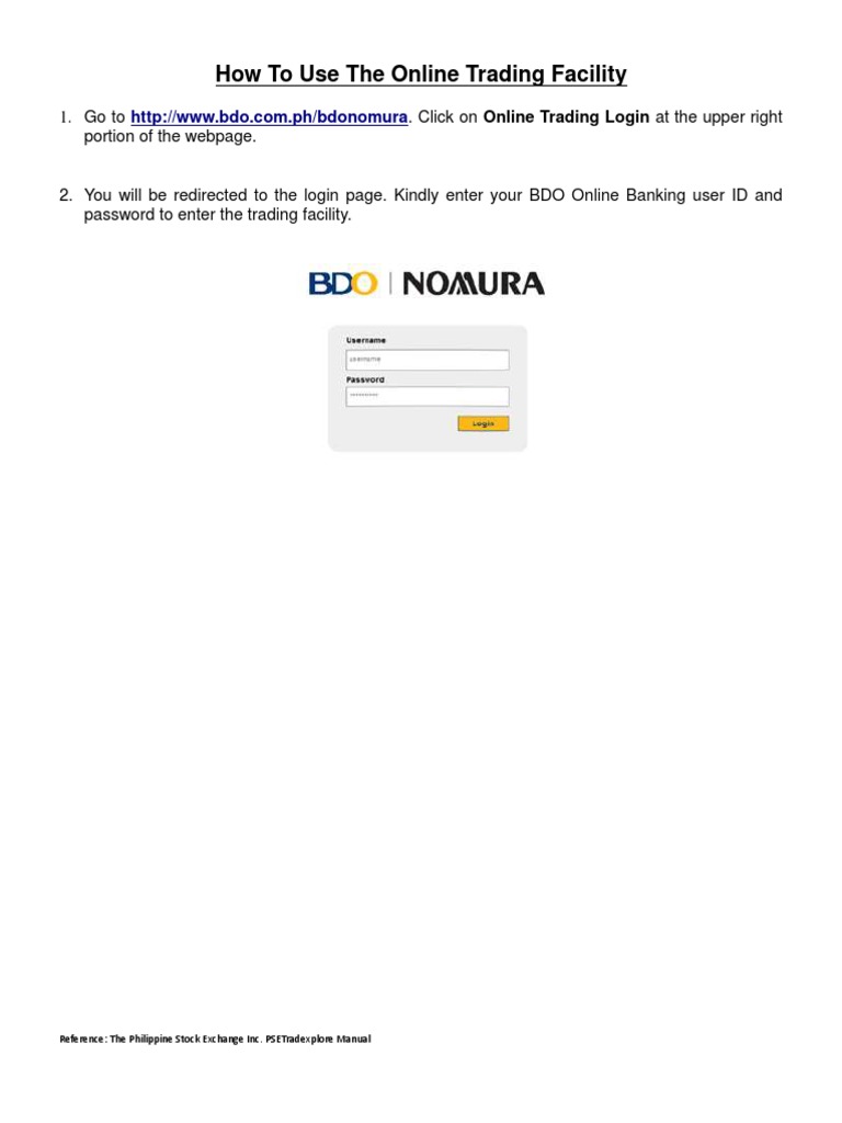 1. Go to http://www.bdo.com.ph/bdonomura. Click on Online Trading Login at the upper right