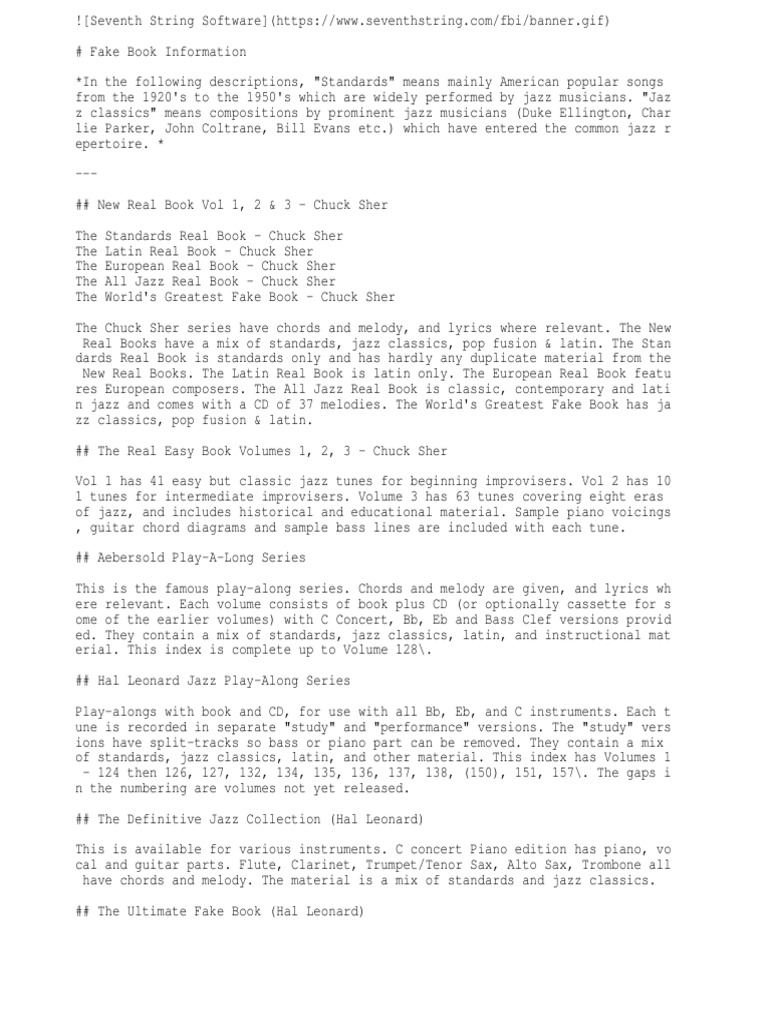 ed. They contain a mix of standards, jazz classics, latin, and instructional mat