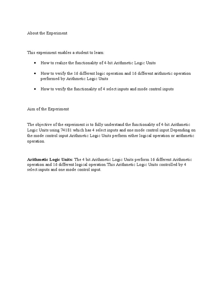 The objective of the experiment is to fully understand the functionality of 4-bit Arithmetic