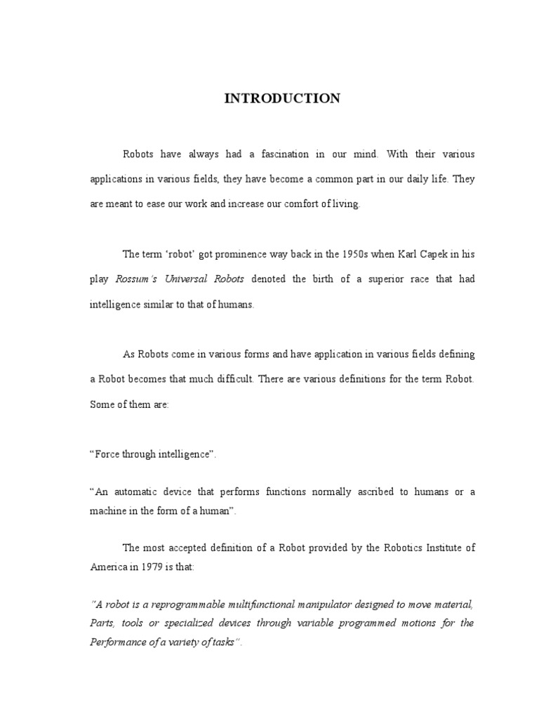 a Robot becomes that much difficult. There are various definitions for the term Robot.