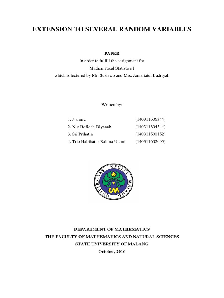 𝐸(𝑌) = ∫ … ∫ 𝑢(𝑥1 , 𝑥2 , … 𝑥𝑛 )𝑓(𝑥1 , 𝑥2 , … , 𝑥𝑛 ) 𝑑𝑥1 𝑑𝑥2 … 𝑑𝑥𝑛