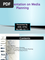 Media planning involves identifying the target audience and geographical area, considering factors affecting the media, establishing objectives, selecting suitable and optimal media mixes, scheduling media, executing advertising programs, and following up and evaluating the results.