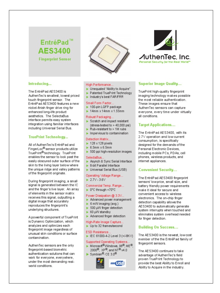 The EntrPad AES3400 sensor incorporates