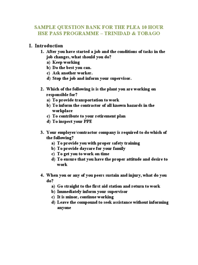 SAMPLE QUESTION BANK FOR THE PLEA 10 HOUR