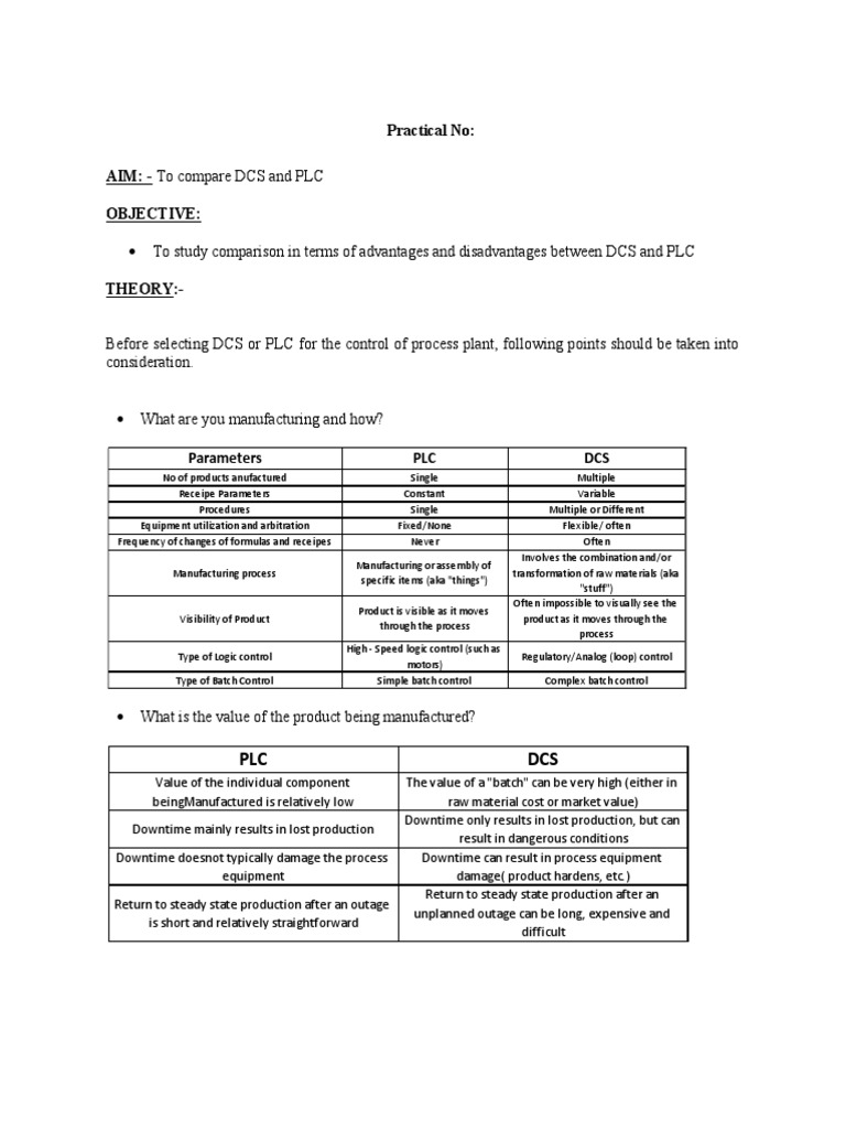 AIM: - To compare DCS and PLC