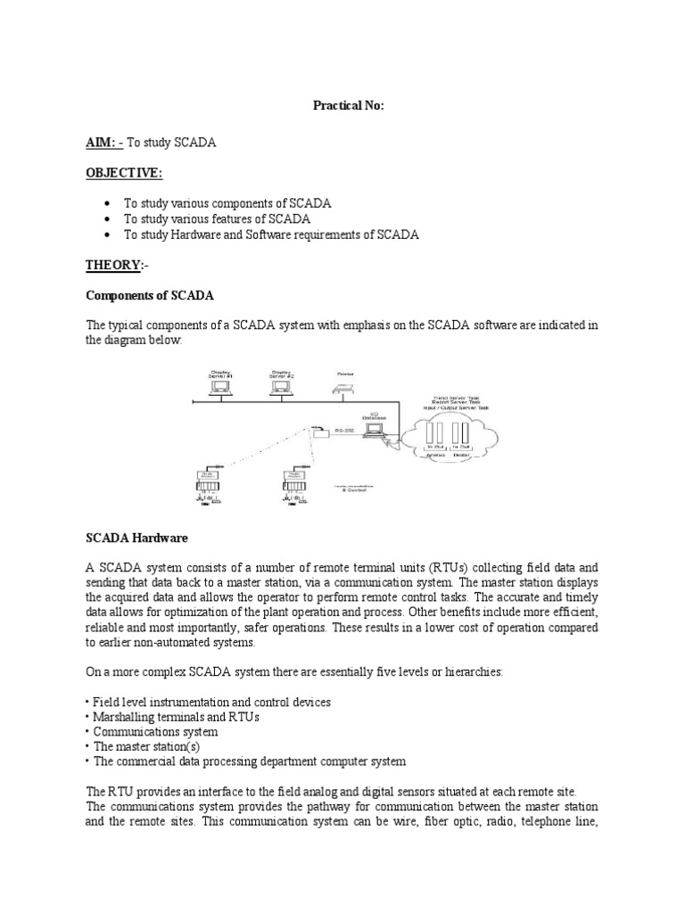 SCADA system. The typical components of a SCADA system are indicated in the following