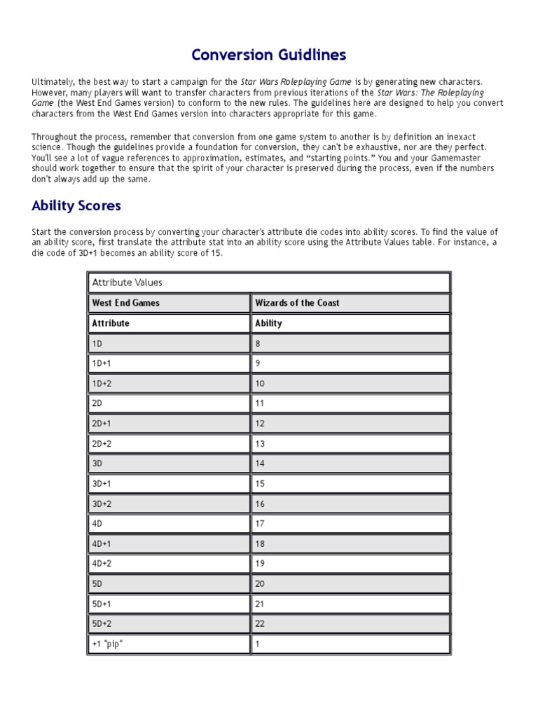 However, many players will want to transfer characters from previous iterations of the Star Wars: The Roleplaying