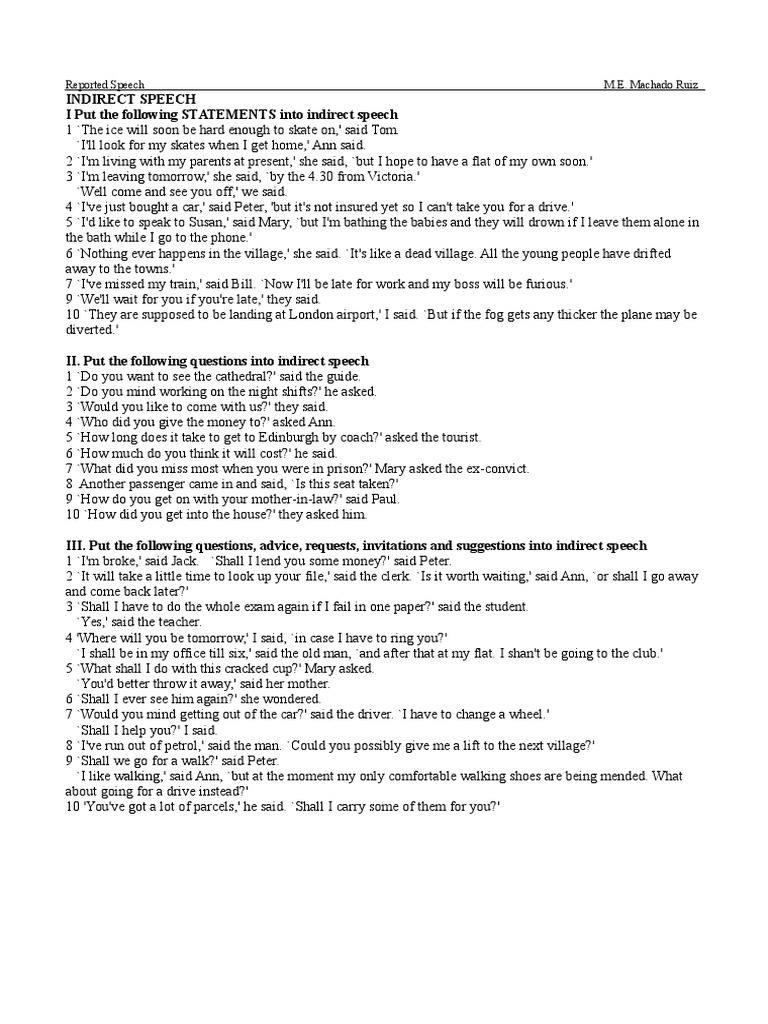 III. Put the following questions, advice, requests, invitations and suggestions into indirect