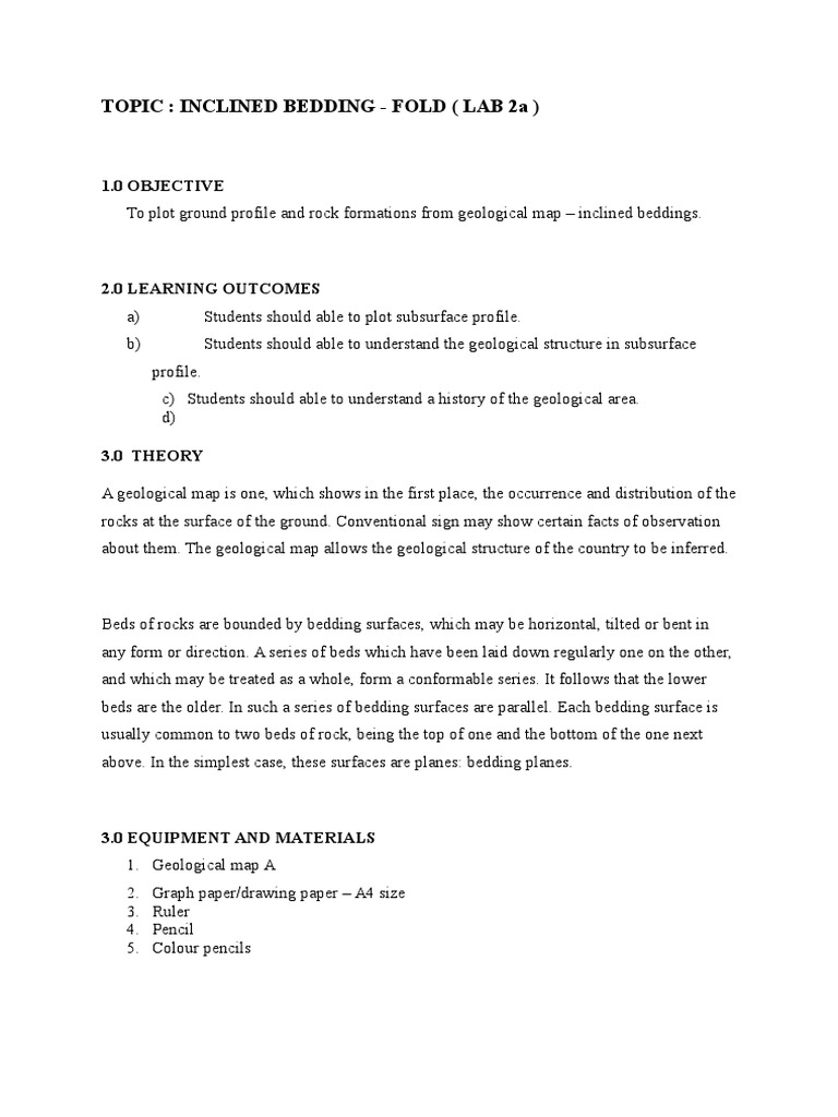 TOPIC : INCLINED BEDDING - FOLD ( LAB 2a )