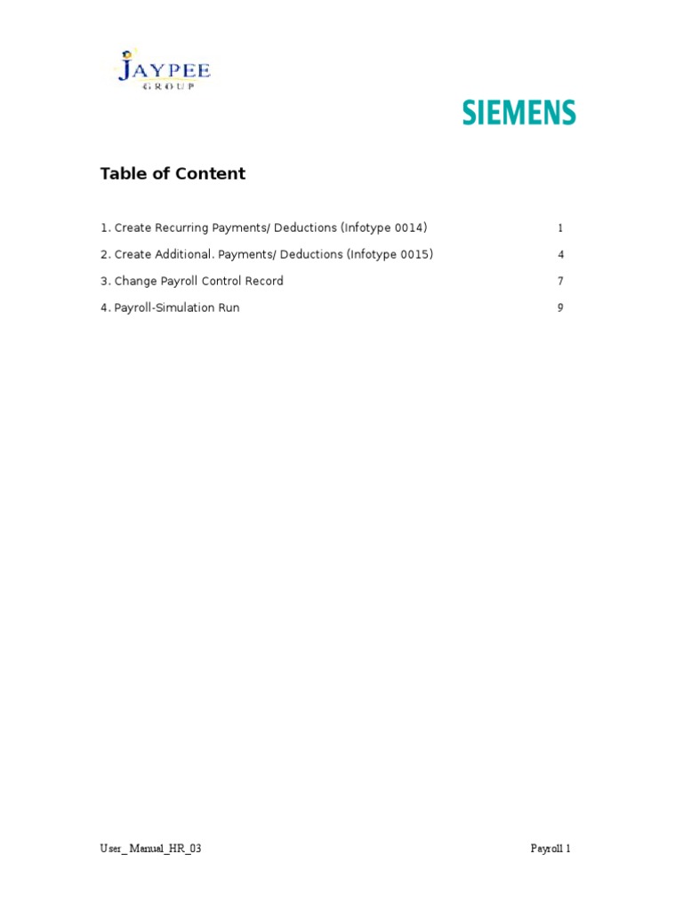 1. Create Recurring Payments/ Deductions (Infotype 0014)