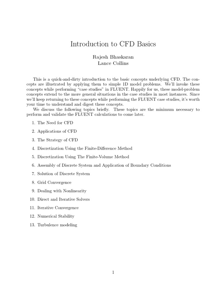 This is a quick-and-dirty introduction to the basic concepts underlying CFD. The concepts are illustrated by applying them to simple 1D model problems. Well invoke these