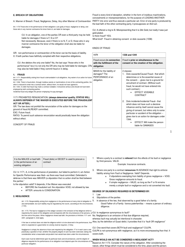 A. Manner of Breach: Fraud, Negligence, Delay, Any other Manner of Contravention PARTY into error and thus execute a particular act. Error of one party is produced by