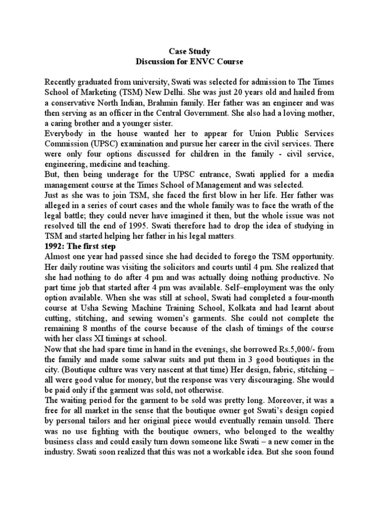 produced hosiery products. Swati was not confused. She was clear. She also had to
