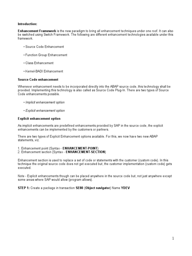 Enhancement section is used to replace a set of code or statements with the customer (custom code). In this
