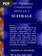 Suffrage is the right and obligation to vote. It is a political right conferred by the Constitution