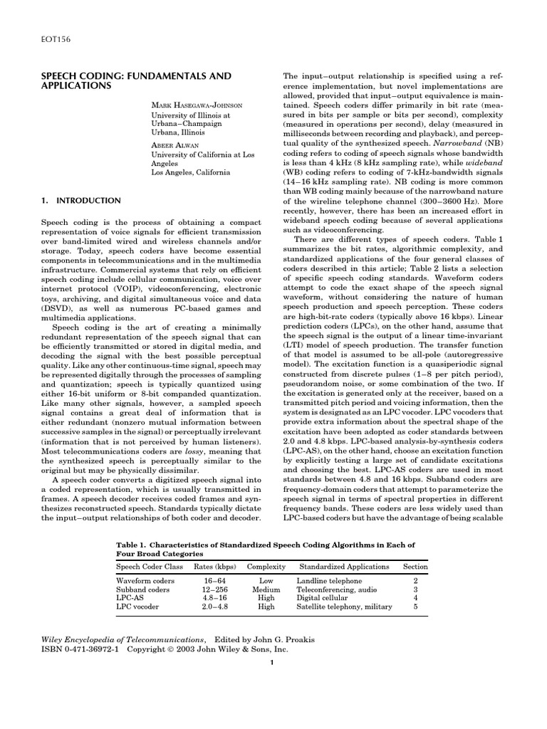 speech coding include cellular communication, voice over