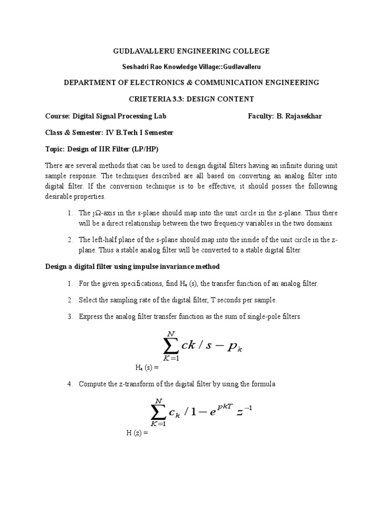 Topic: Design of IIR Filter (LP/HP)