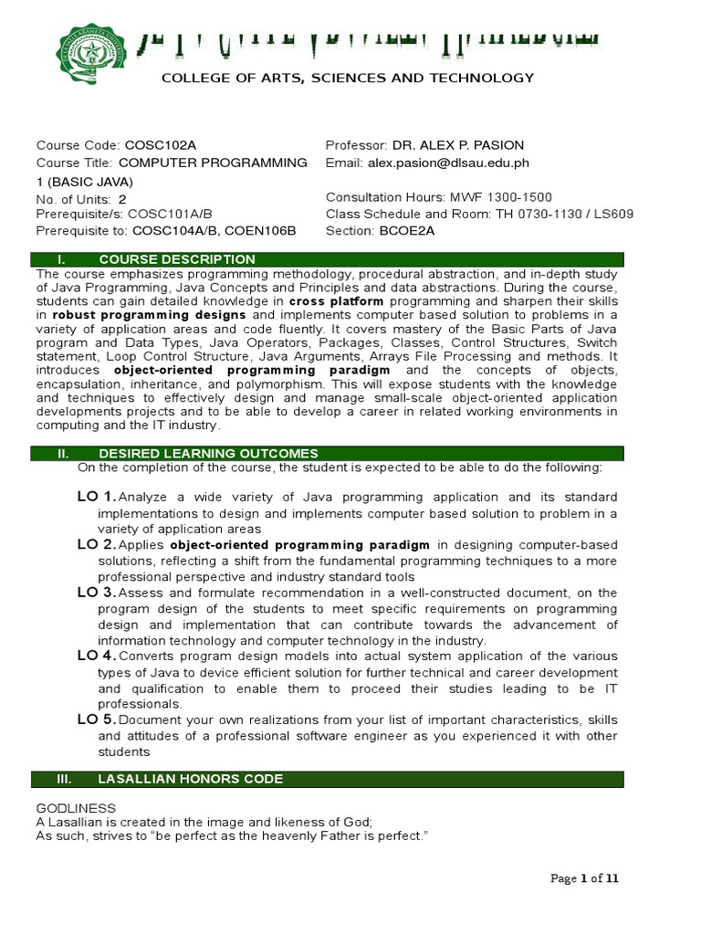 of Java Programming, Java Concepts and Principles and data abstractions. During the course,