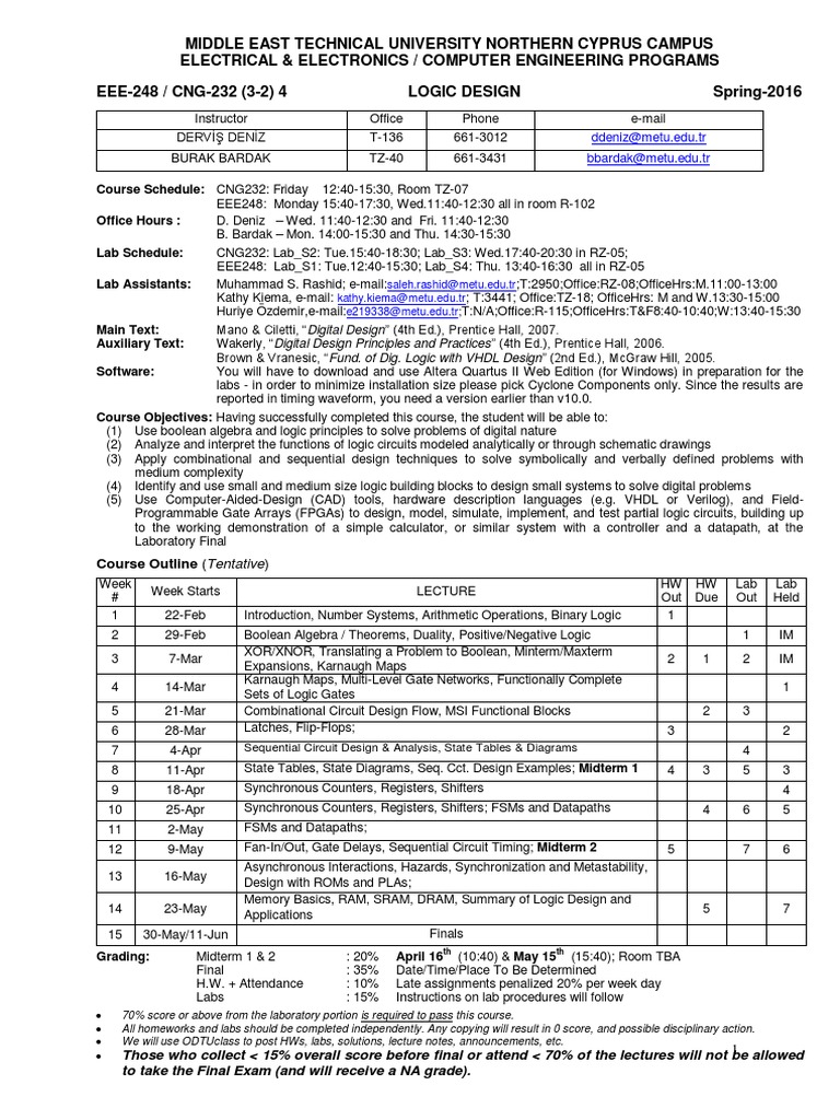 Course Schedule: CNG232: Friday 12:40-15:30, Room TZ-07