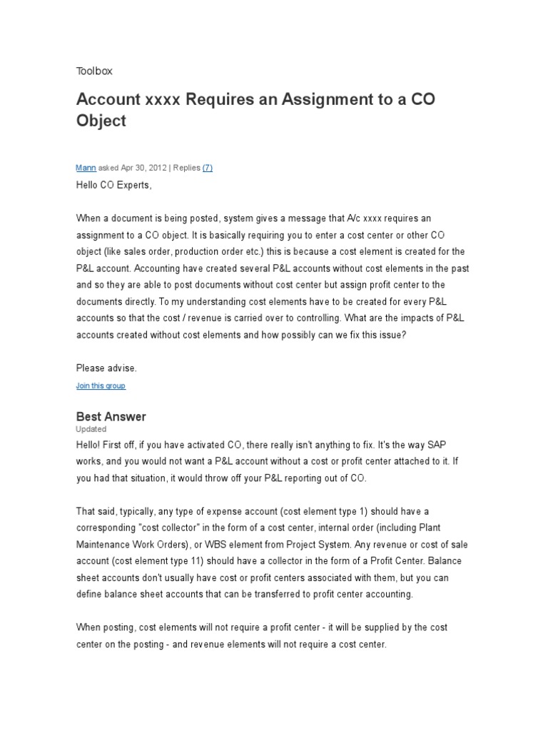 assignment to a CO object. It is basically requiring you to enter a cost center or other CO