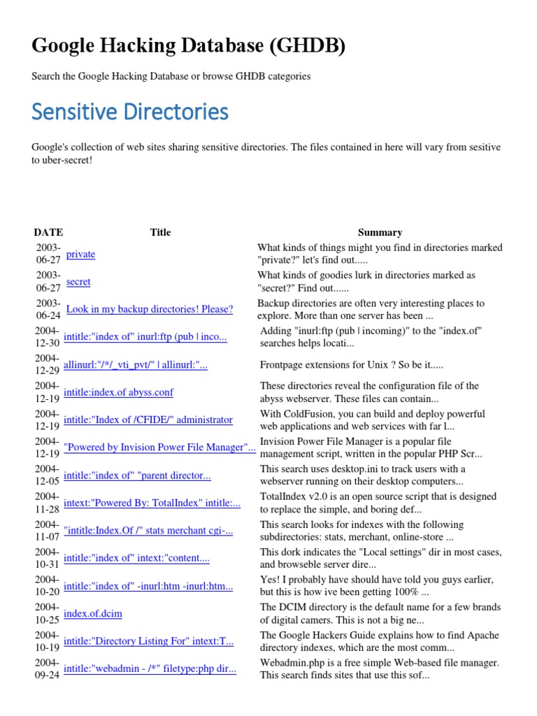 2004The Google Hackers Guide explains how to find Apache