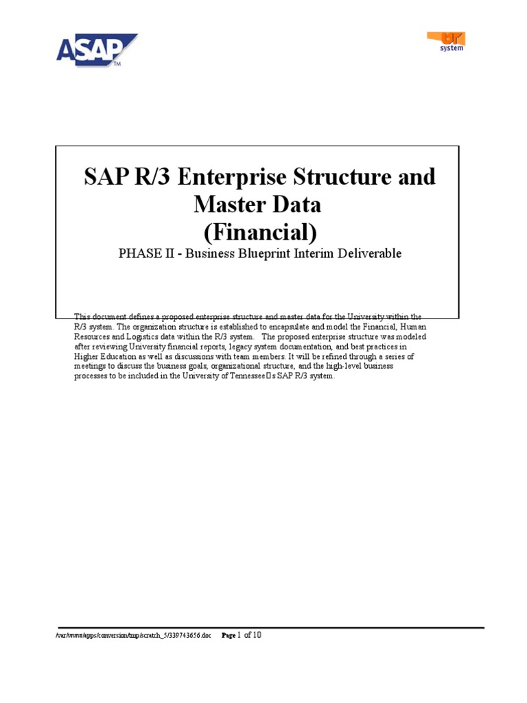 R/3 system. The organization structure is established to encapsulate and model the Financial, Human