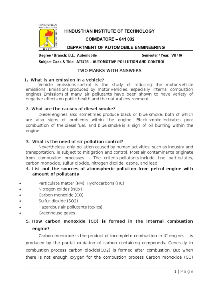 Subject Code & Title: AT6703  AUTOMOTIVE POLLUTION AND CONTROL
