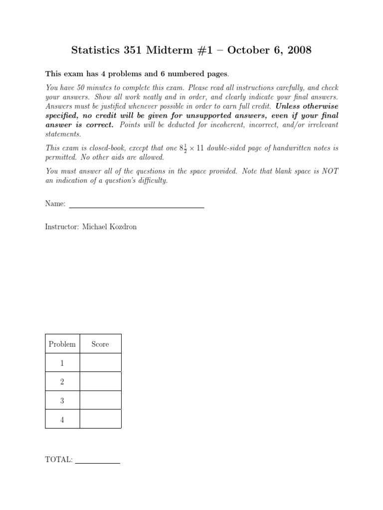 This exam is closed-book, except that one 8 12 11 double-sided page of handwritten notes is