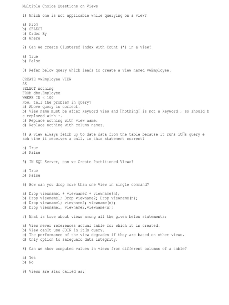 Multiple Choice Questions on Views