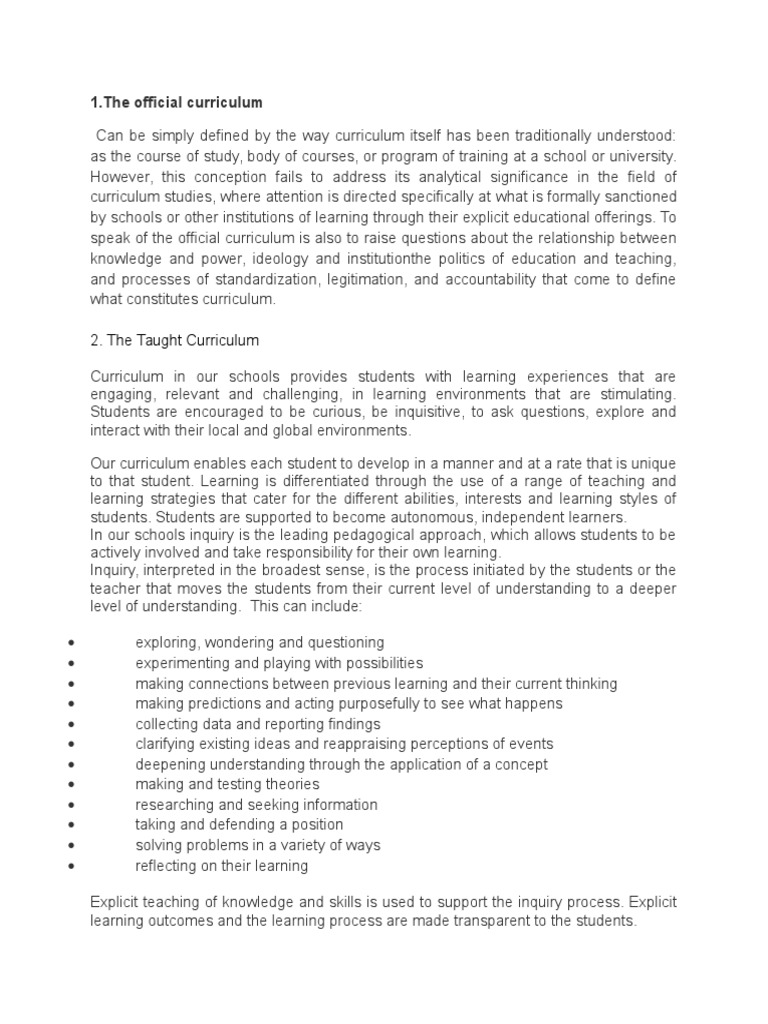 curriculum. Since it is physically impossible to teach everything in schools, many topics