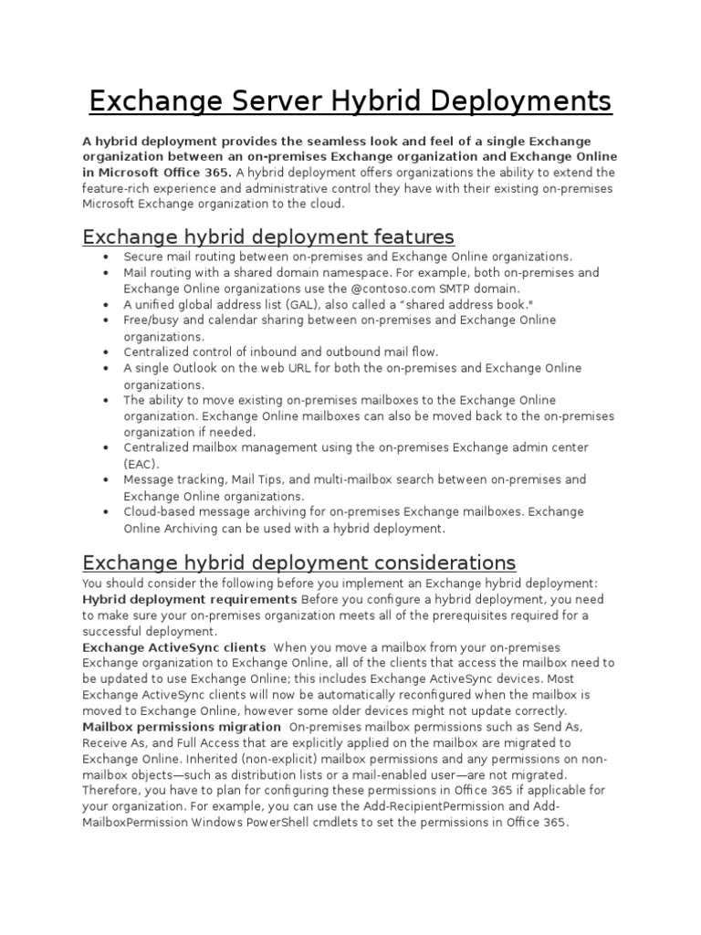 Exchange servers At least one Exchange server needs to be configured in your onpremises organization if you want to configure a hybrid deployment. If you're running