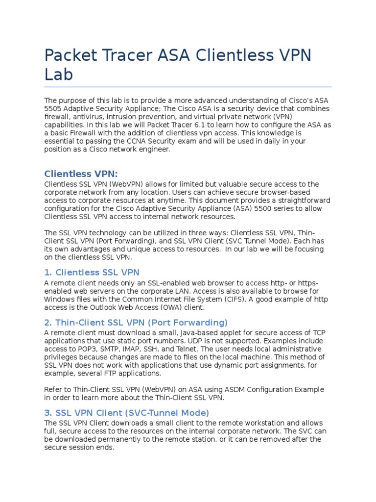 Packet Tracer ASA Clientless VPN