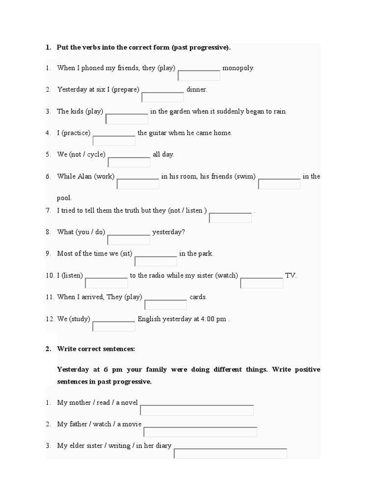 1. Put the verbs into the correct form (past progressive).
