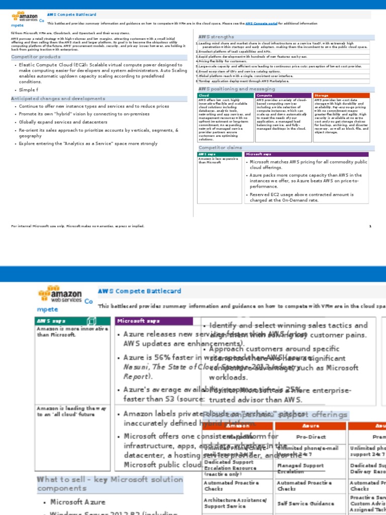 This battlecard provides summary information and guidance on how to compete with VMware in the cloud space. Please see the AWS Compete portal for additional information