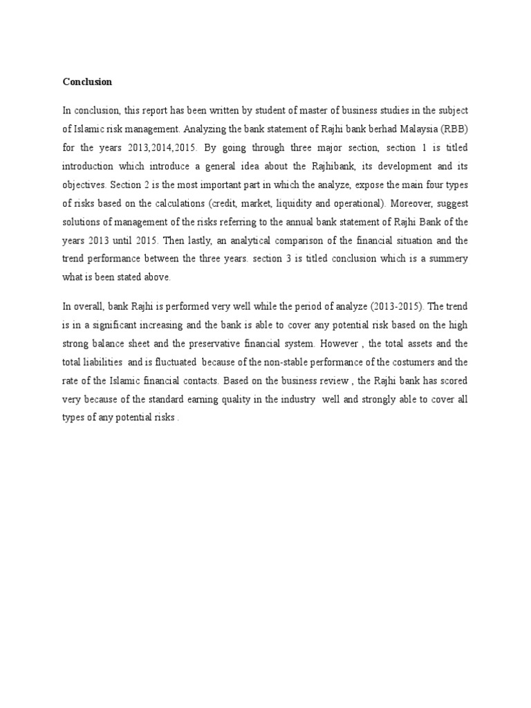 of Islamic risk management. Analyzing the bank statement of Rajhi bank berhad Malaysia (RBB)