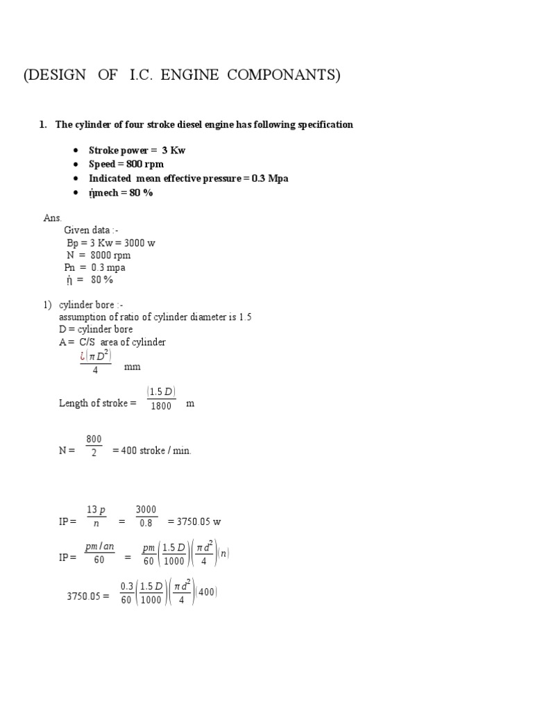 1) cylinder bore :assumption of ratio of cylinder diameter is 1.5
