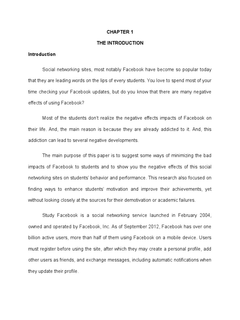 impacts of Facebook to students and to show you the negative effects of this social
