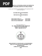 In this work, friction stir welding of mild steel was carried out on 3 mm thick plates and butt