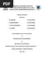 conduct the experiments. The staff of welding laboratory, Mr A Shivakumar, Mr. Ayodhya