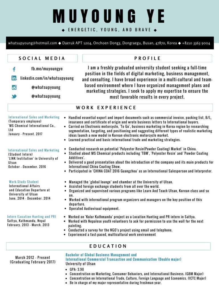 Attended the Top 5 ranked Sungkyunkwan University as a national exchange student.
