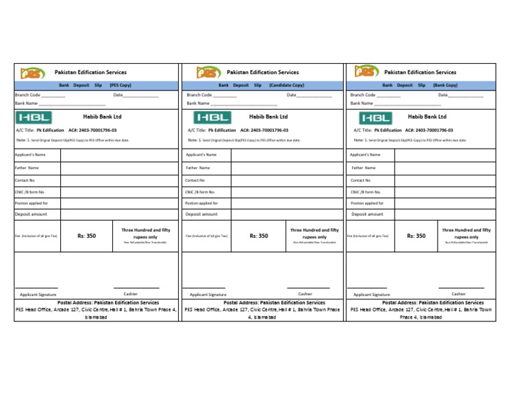 Note: 1. Send Orignal Deposit Slip(PES Copy) to PES Office within due date.