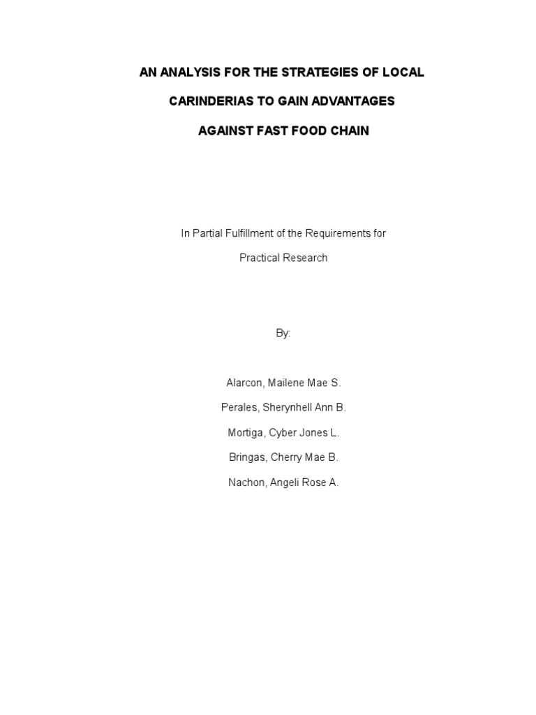 analysis for the strategies of local carinderia to gain advantages against fast food