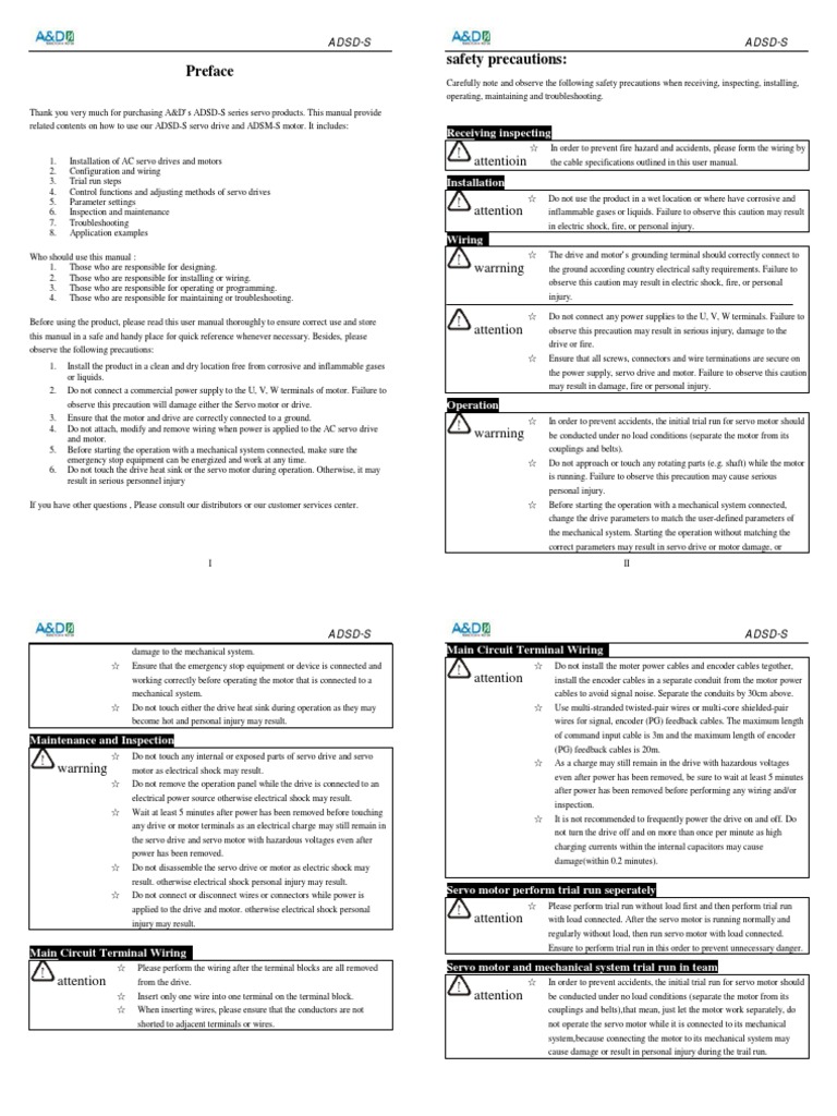 Thank you very much for purchasing A&Ds ADSD-S series servo products. This manual provide