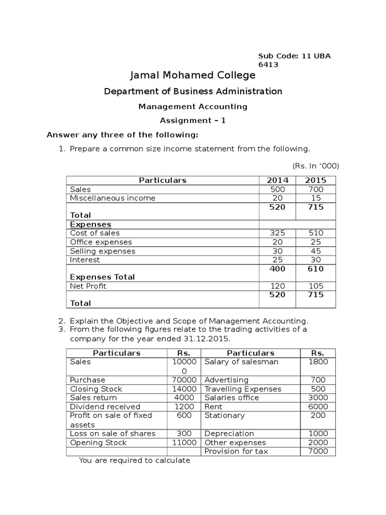 1. Prepare a common size income statement from the following.
