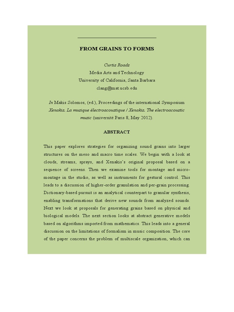 Roads, C (Forthcoming) Composing Electronic Music: A New Aesthetic.